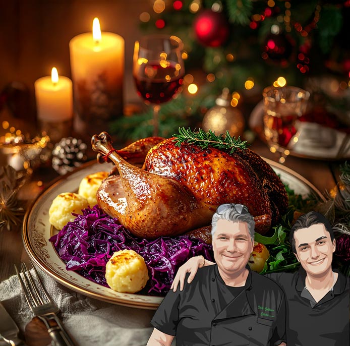 Gans, Ente oder Pute – z.B. mit Rotkohl & Klößen.